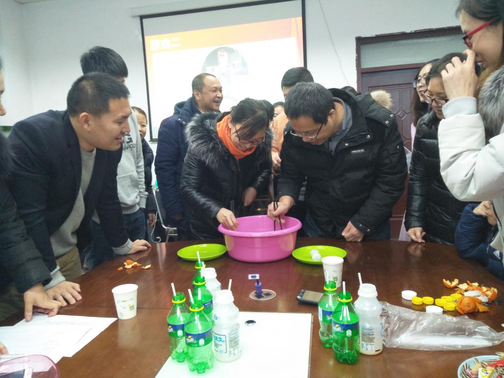 会后,学院工会积极组织开展了新年茶话会活动。吸饮料、夹乒乓球、猜歌名、猜成语、成语接龙等游戏为全体教师在结束了一年的忙碌之后送上了一丝温暖和惬意。活动在《明天会更好》的深情合唱中落下帷幕。2018,我们整装再出发!